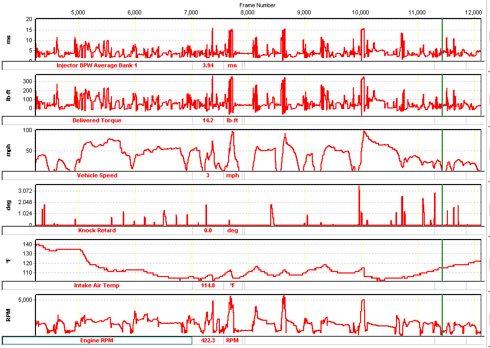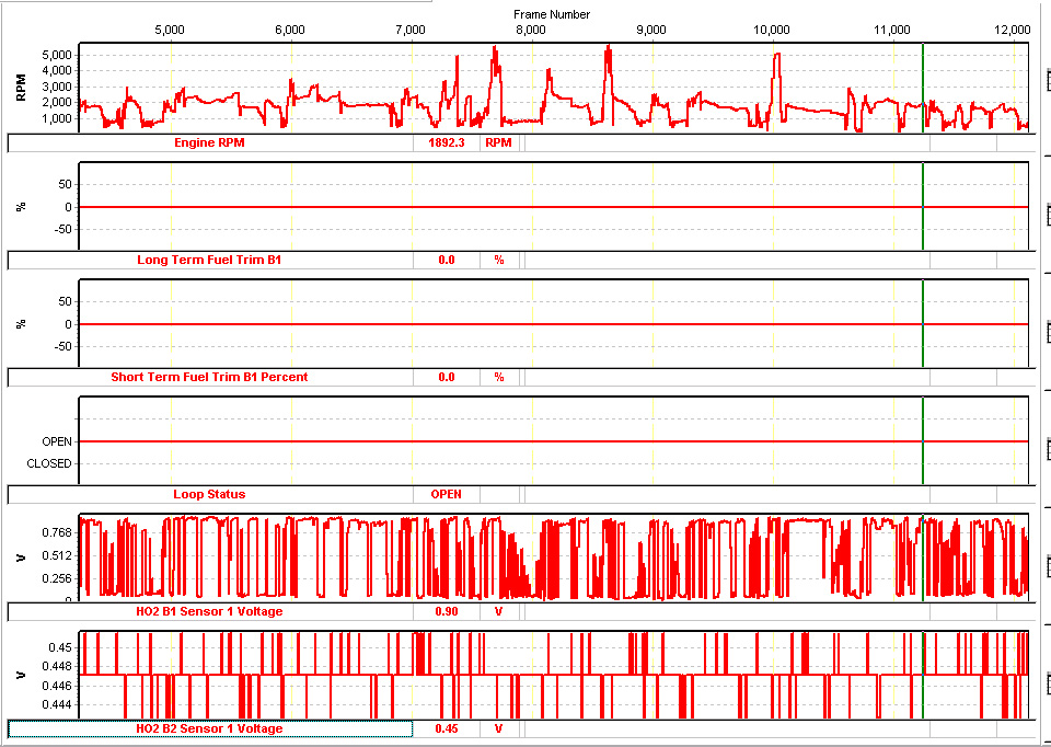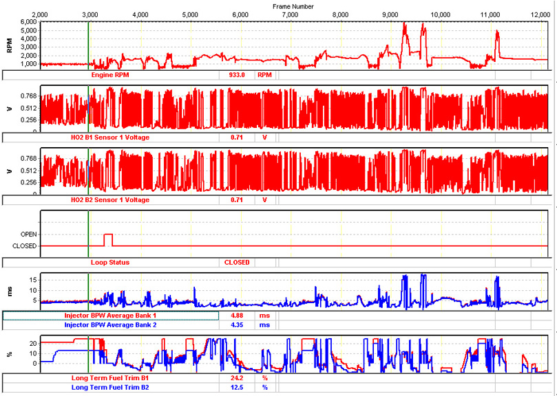 NOTE: the sliders are active so you can move through the dataNotice how lean the left head (LTFTB1) fuel trim is to what the right LTFTB2 is.