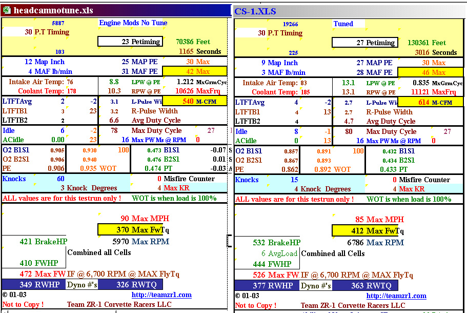 For this example we compare a stock GM calibration and one we tuned in a 2001 Z06.