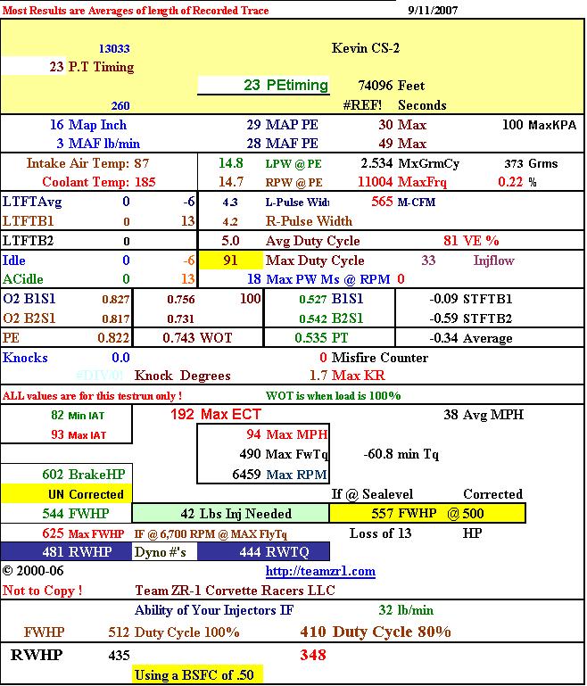 As seen with the results after we custom tuned is larger injector are needed since the injector duty cycle is peaking at 91%. Once they are replaced a tweak of tune can be done to gain more WOT timing and gain of performance