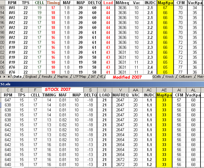 Notice this modified 2007 ( top data stream) mentioned in this thread how much vaccum is lost at idle and thus a domino effect to all other engine functions.