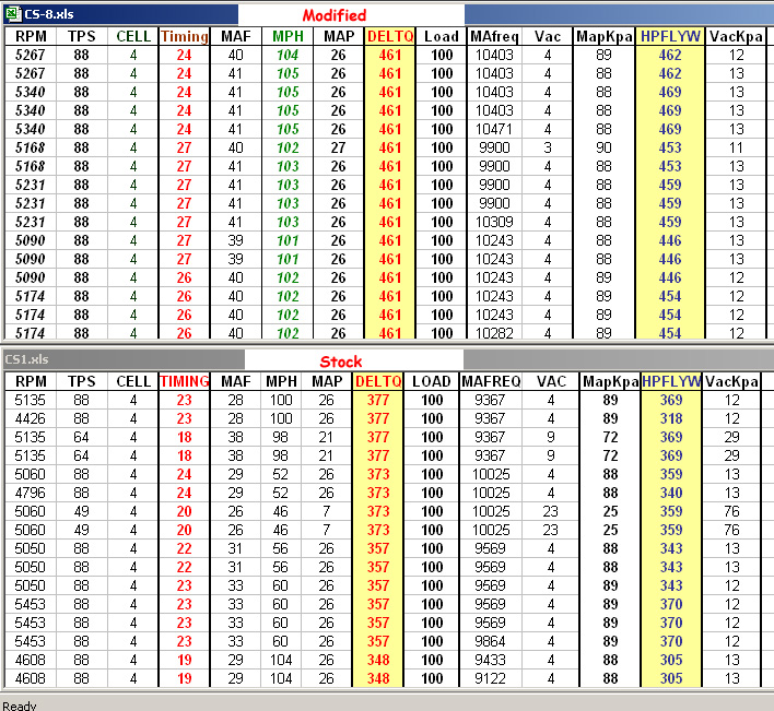 [code]E-Time RPM KR TPS CELL Timing LTFTB1 IAT HO2B1S1 PWB1 LTFTB2 MAF MPH MAP PWB2 ECT HO2B2S1 DELTQ MISFIRE Load MAfreq MAFgrms Learn STFTB1 STFTB2 Vac Calcload INJDC grmcyc MapKpa HPFLYW Distance CFM Injflow VacKpa VE Kelvin