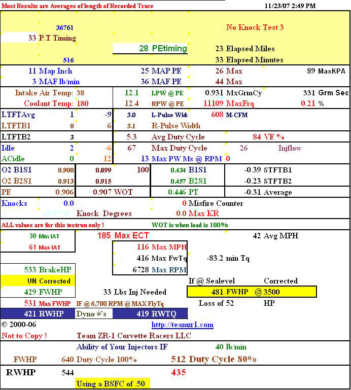 Average WOT timing was 27 degrees which shows no loss due to being too lean.