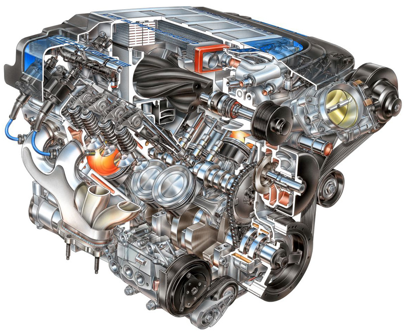 Heavy-duty and lightweight reciprocating components enable the engine’s confident high-rpm performance, while the large-displacement Eaton supercharger pushes enough air to help the engine maintain power through the upper levels of the rpm band.