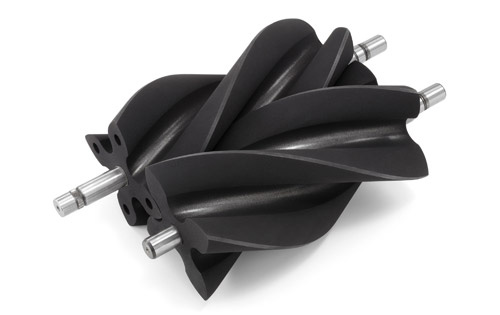 The design of the supercharger case and its integrated charge cooling system was driven by the space and dimensions afforded under the Corvette’s hood. To that end, the charge cooler was designed as a “dual brick” system, with a pair of low-profile heat exchangers mounted longitudinally on either side of the supercharger. Coupled with the supercharger itself, this integrated design mounts to the engine in place of a conventional intake manifold and is only slightly taller than a non-supercharged 6.2L engine. The air inlet and rotor drive pulley are positioned at the front of the supercharger.