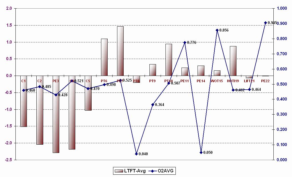 This shows what the front 02 sensors reported verus what LTFT values for each fuel trim cell that was used