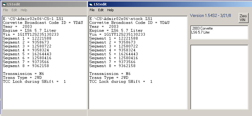 C5s are much safer, GM would not even bother, they would for a C6 though but in most cases for a C5 if done correctly you cannot tell the dfference as the example I did below is showing a untouched 02 Z06 and then when I made tuning changes and as you see the segment ID and CVN/broadcast are the same thus even comparing side by side you cannot tell which one I tuned