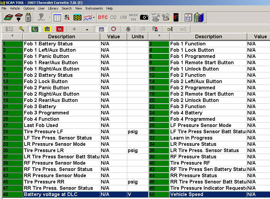 ⇒ If any of the parameters listed above are not displayed, replace the suspect tire pressure sensor.