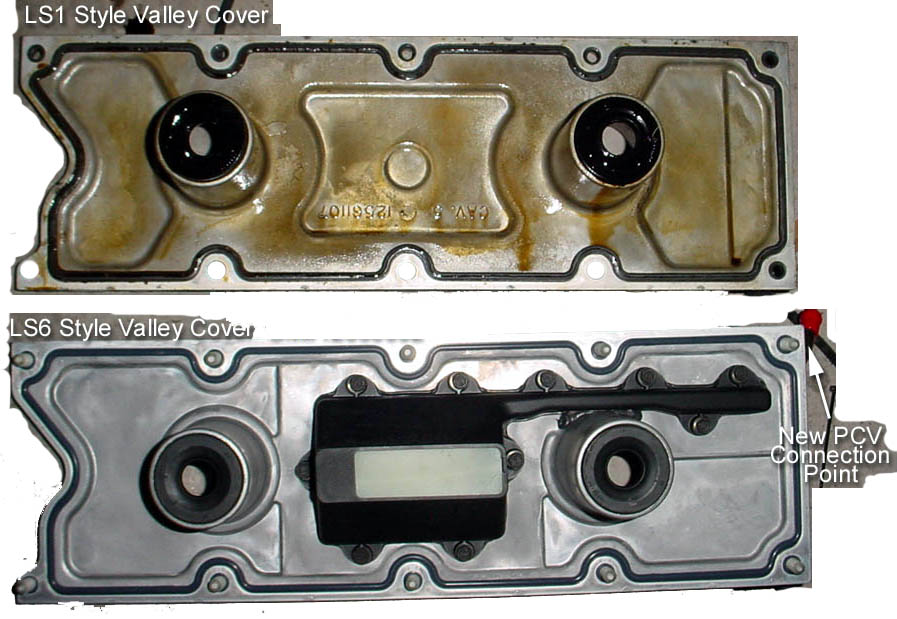 If wanting to convert to the LS6 PCV system the valley pan of the LS6 has to be used that has a oil baffle as seen below.