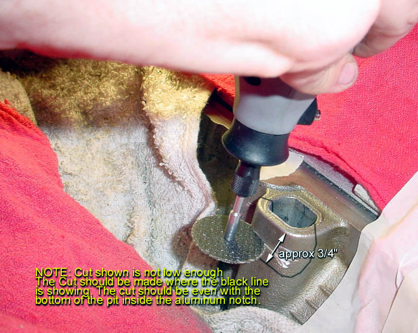 To make it work you have to cut out one boss as shown to get the free space for baffle to fit.