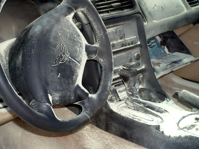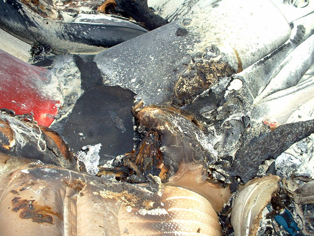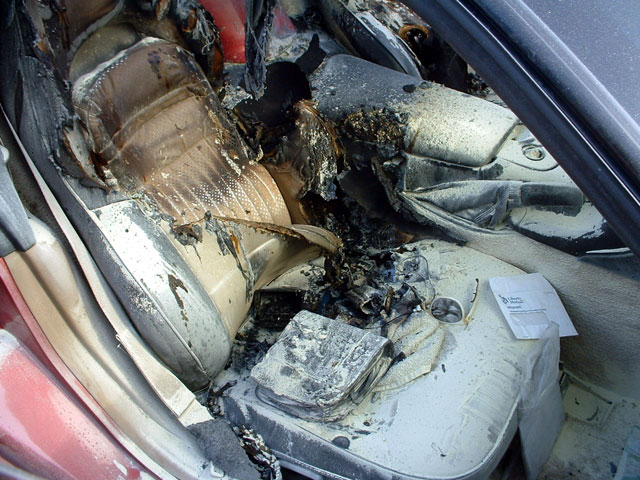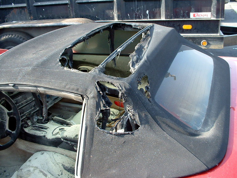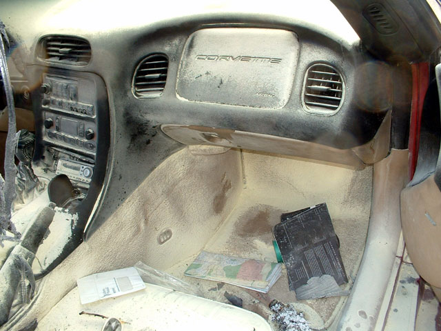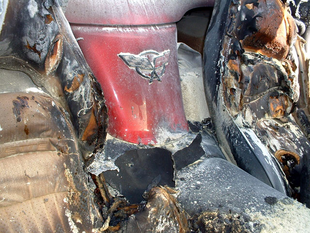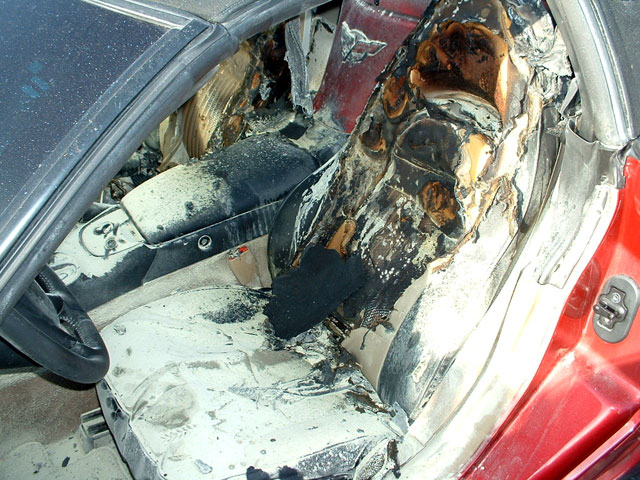 Owner of this ragtop C5 working in the Santa Cruz Ca area, someone cut the ragtop and put lighted road flares onto each seat.