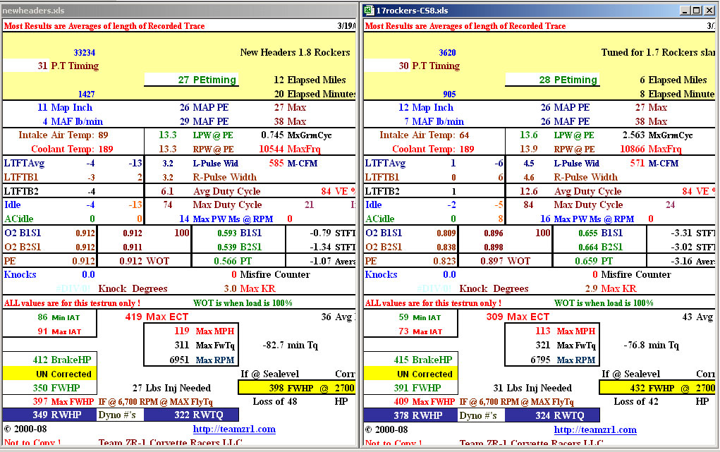 Here is results from a C5 owner installing 1.8 rockers which we then PCM tuned and then same car with the stock 1.7 rockers also PCM tuned.
