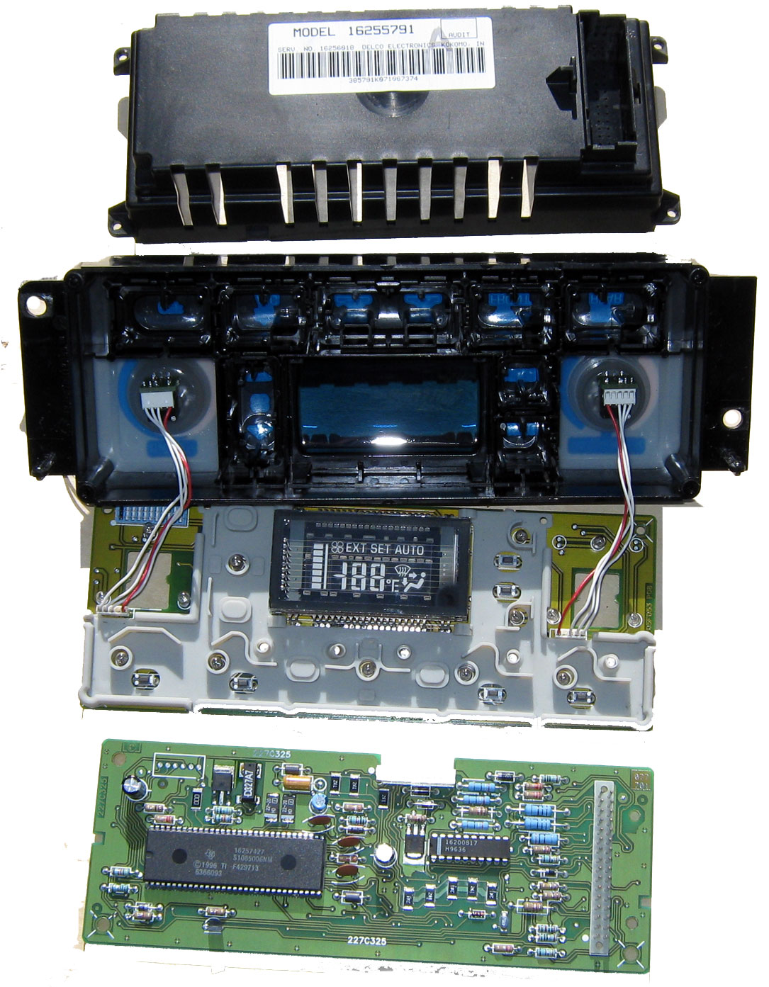 In most cases when the HVAC screen is dim or goes blank there is 5 surface mount resisters that need to be re-soldered shown below.