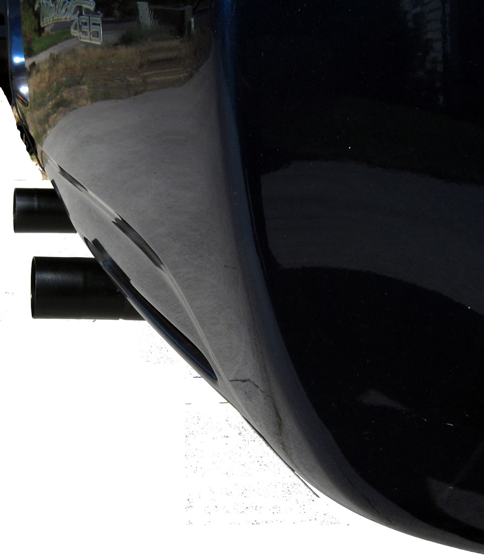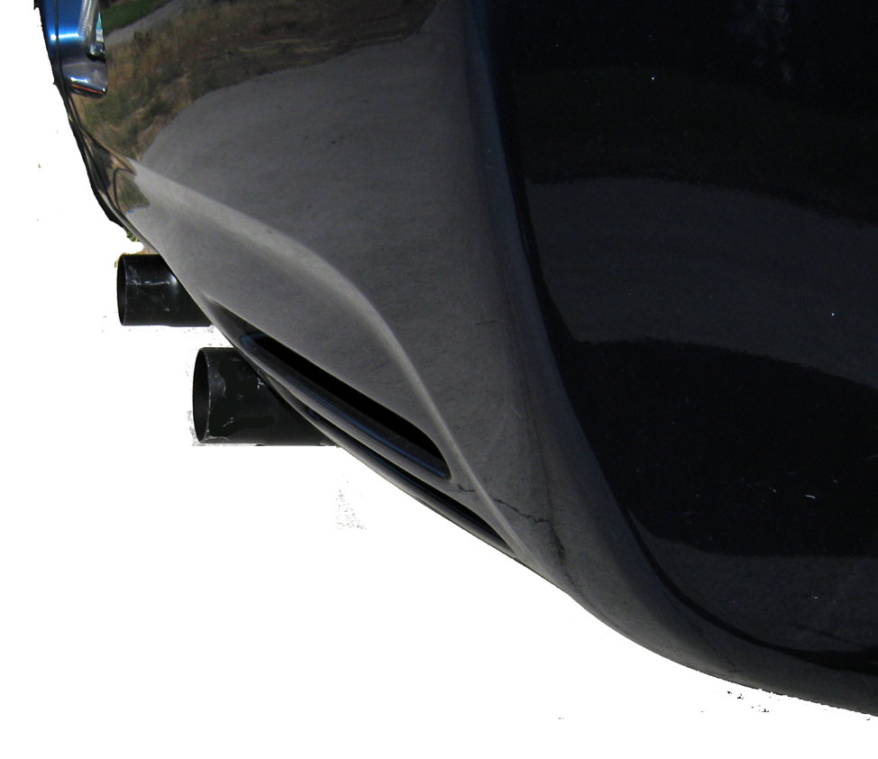 Design testing of end of tailpipes 2,5 and 8 inch longer then in design 2. Each additional length to bring end of tailpipes further away from underside reduced sound level in drivers are from mid 80s DBA to 78 DBA at idle but no loss to sound level at the end of tailpipes.