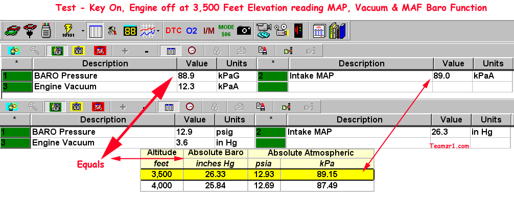 Another method is using the MAF's output frequency where above test was using The PCM calculating BARO and reported values seen with OBD scanner