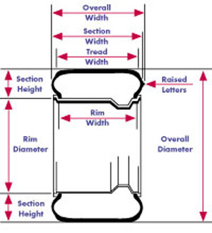 Width x Aspect Ratio = Section Height Section Height x 2 = Combined Section Height Combined Section Height + Wheel Diameter = Tire Diameter
