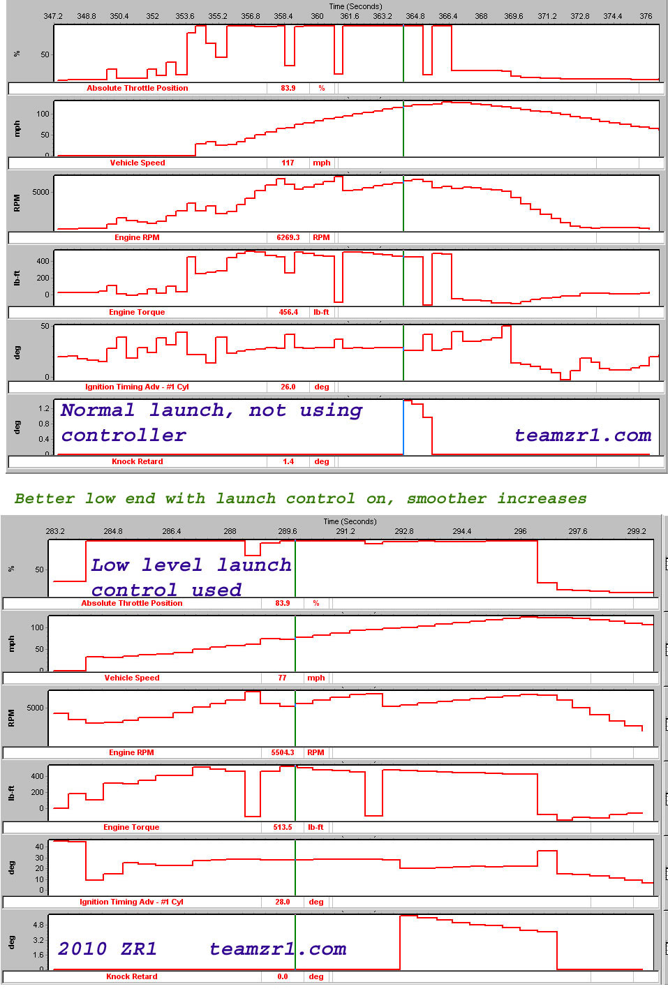 If you carefully look though you see the engine and drivetrain was much smoother off the line and if the air temps are lowered then using launch control would have had better 1/4 values.