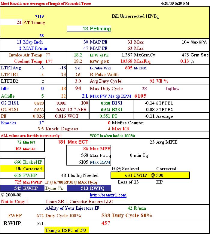 Test results was before adjusting for installing 60 lb/hr injectors and bringing boost up to 14 PSI