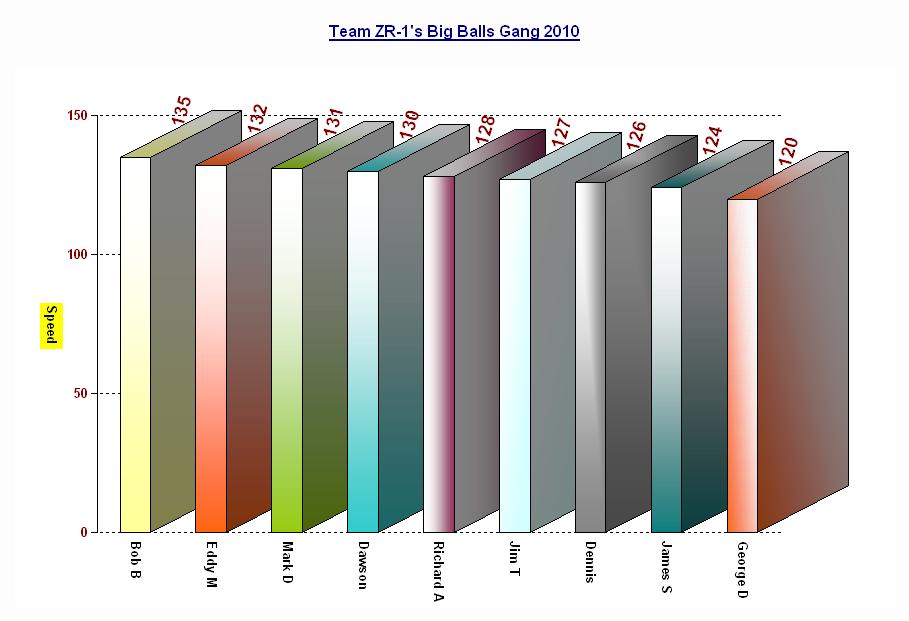 We are proud to announce the speeds of those teammate members who met with the following speeds to be honored for the Big Balls Gang for 2010