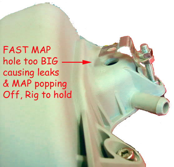 1. Hole for MAP sensor was designed too large thus causing vacuum leaks and sensor to pop up over time