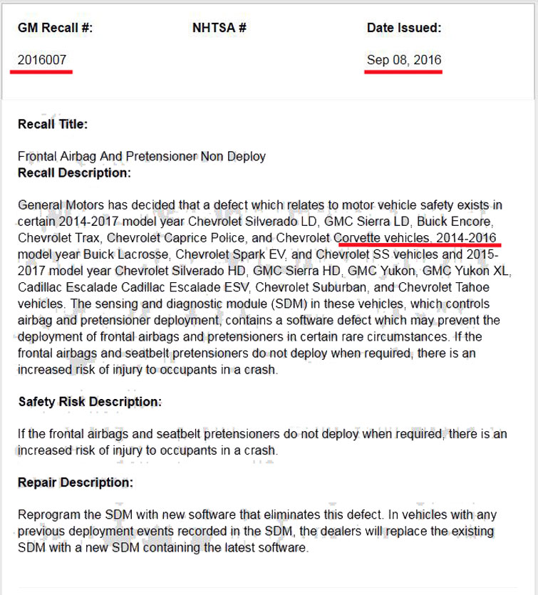 All C7s Airbag Recall