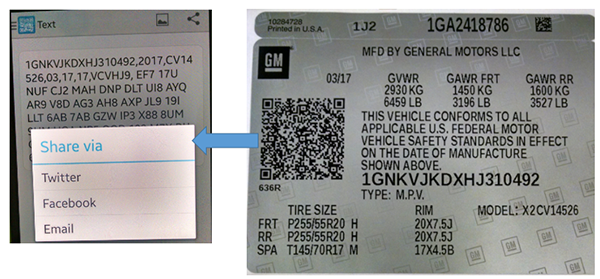 The two-dimensional QR code is a simple barcode that offers the former SPID information in a digital format. The Certification label on all GM models is located on the driver-side B pillar, with the exception of the Corvette where it’s on the driver’s door.