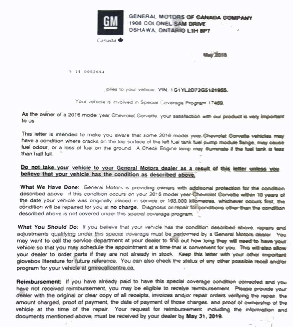 For the last couple of weeks in May, General Motors began sending letters to owners of C7 Corvettes to notify them of a potential issue with their Corvette’s fuel tanks. Based on those chiming in on the forums, the notice covers Corvettes built from 2014-2017 and includes all models - Stingray, Grand Sport and Z06