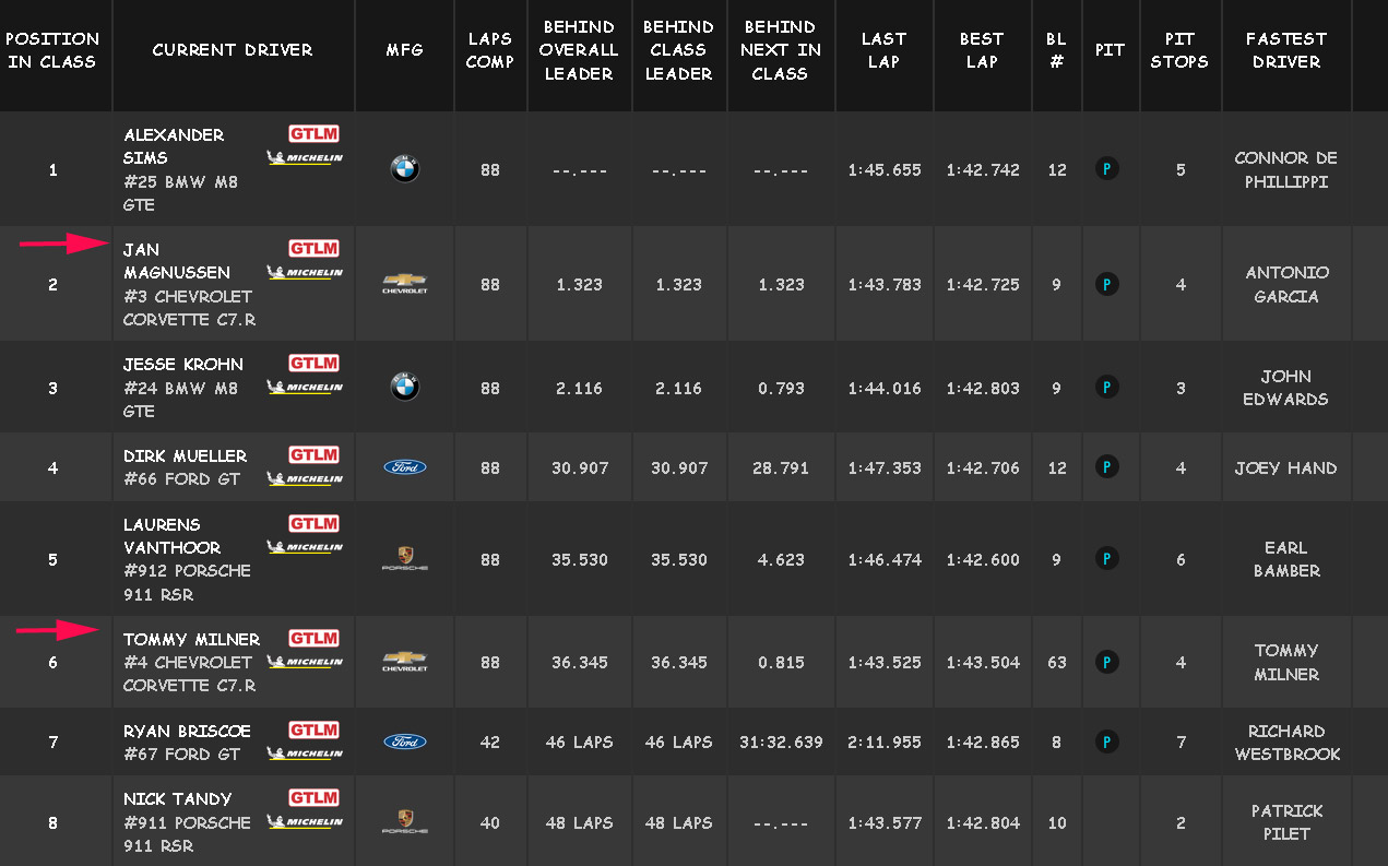 The final stop was critical in that the Corvette Racing crew got him out ahead of one of his championship contenders who had pitted two laps earlier to hold on to second place and valuable points. It was a fight to the end with Magnussen driving as hard as he could for the closing stint.