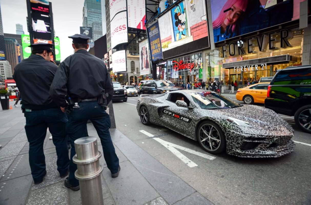 GM CEO Mary Barra and Corvette Chief Engineer Tadge Juechter in a camouflaged C8 tooling around the streets of New York as Barra announced the car's existence at a charity event in New York. The icing on the cake came shortly after when GM product chief Mark Reuss posted pictures of the C8 on his Facebook page.