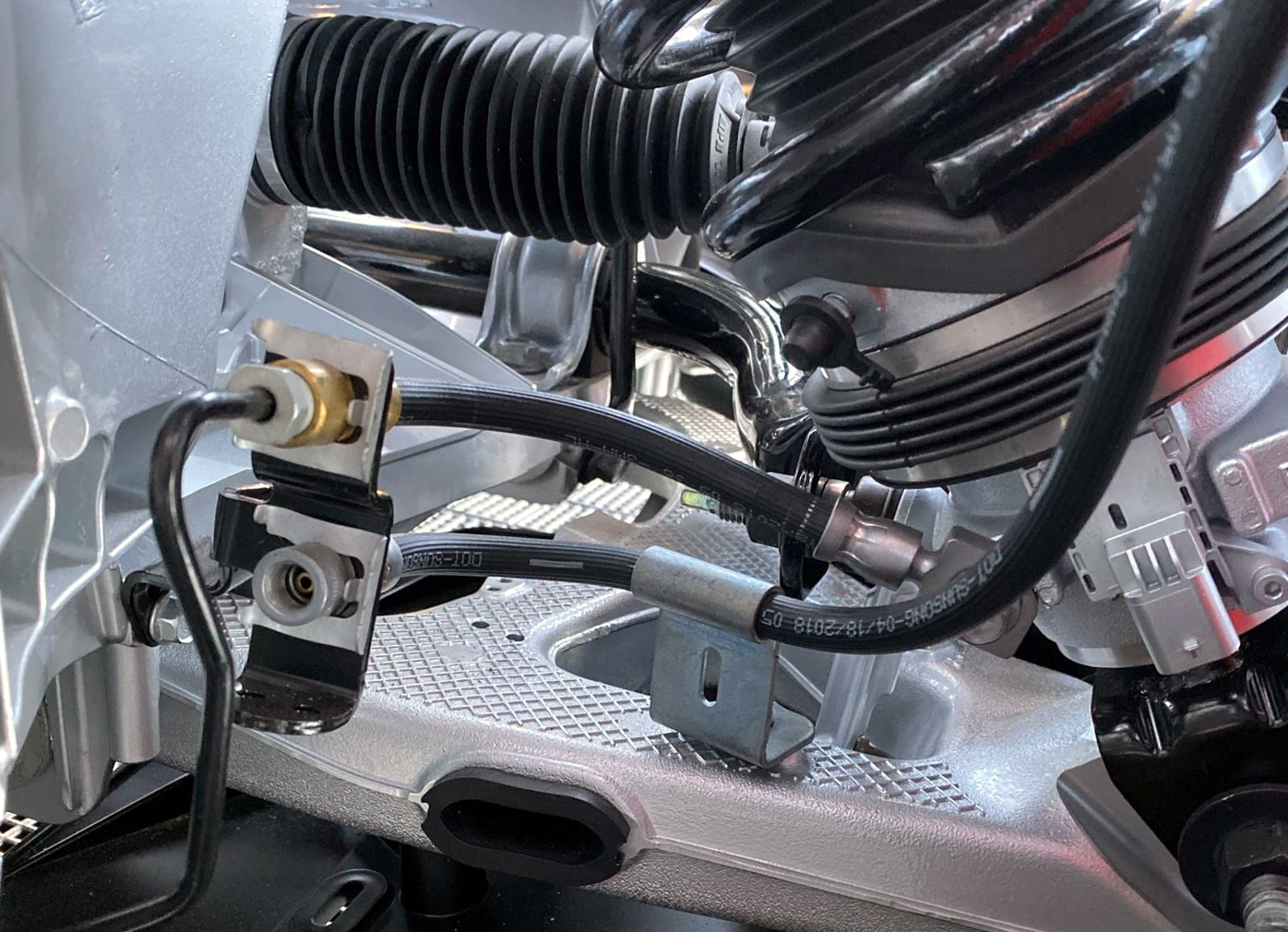 As seen in a image you notice there is no adjuster to allow setting ride and corner weight of the coil-over spring