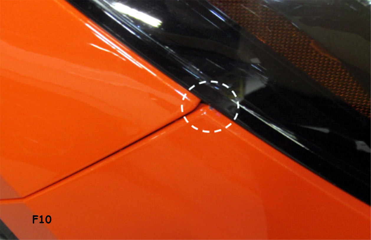 Some 2020 Corvettes may have a small paint chip in the front fascia below the headlamp on one or both sides of the vehicle. (Fig. 10) The paint chip may be caused by a miss positioned fender-to-fascia gap joint.