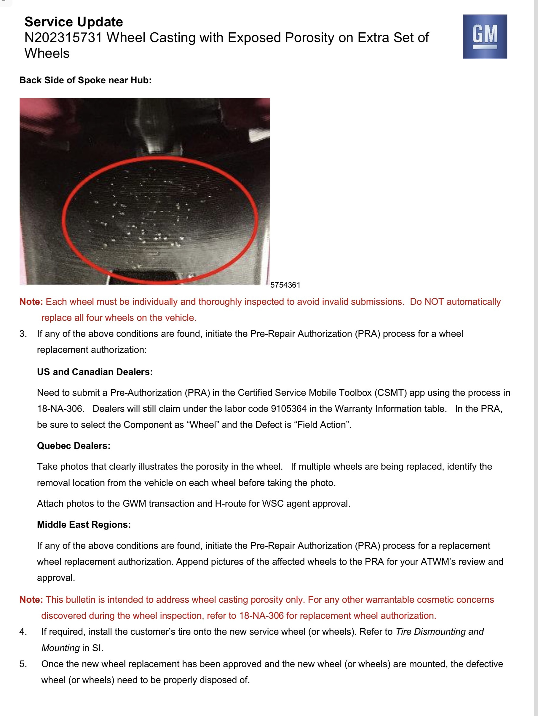 Service Bulletin - Wheel Porosity