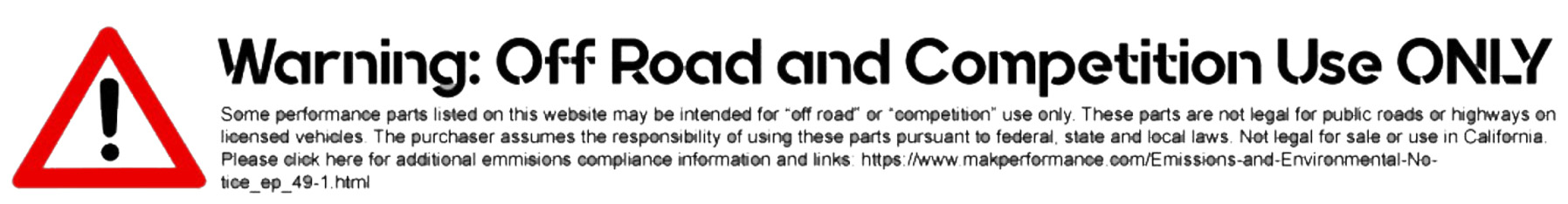 THIS PRODUCT IS FOR COMPETITION USE ONLY. ALL OTHER USES ARE CONTRARY TO FEDERAL LAW. IF YOU INTEND THIS PRODUCT FOR HIGHWAY OR NON-COMPETITION OFF-ROAD PURPOSES, DO NOT PURCHASE OR INSTALL THIS PRODUCT.