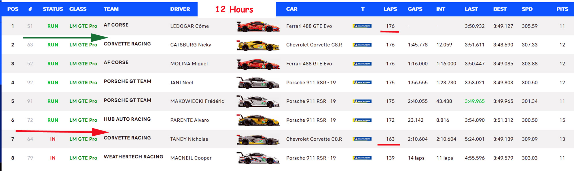 We were the first cars to double-stint our first set of slicks. The C8.R is running perfectly. The Ferraris have a bunch of speed, but we will see. But probably the biggest competition we have is Le Mans. You never know what is going to happen in this race.”