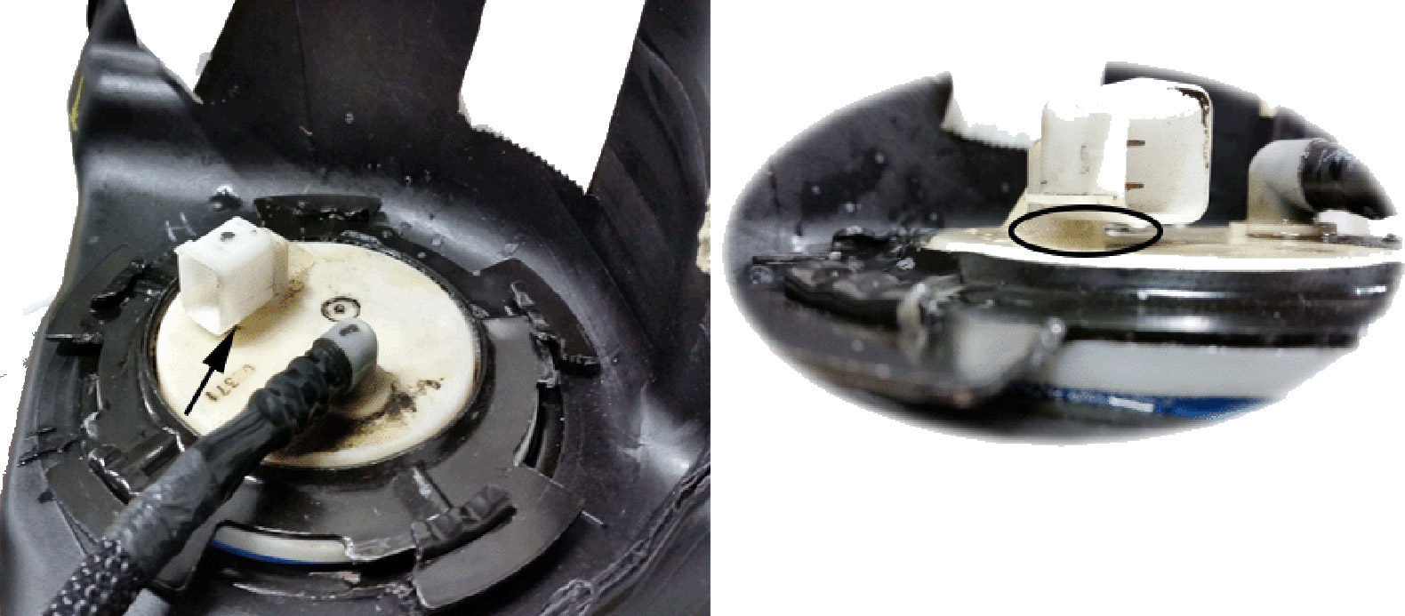 If a leak is detected, remove the fuel tank – left side. Inspect the area below the electrical connector for evidence of fuel leakage. If leakage is found, replace the fuel tank fuel pump module.