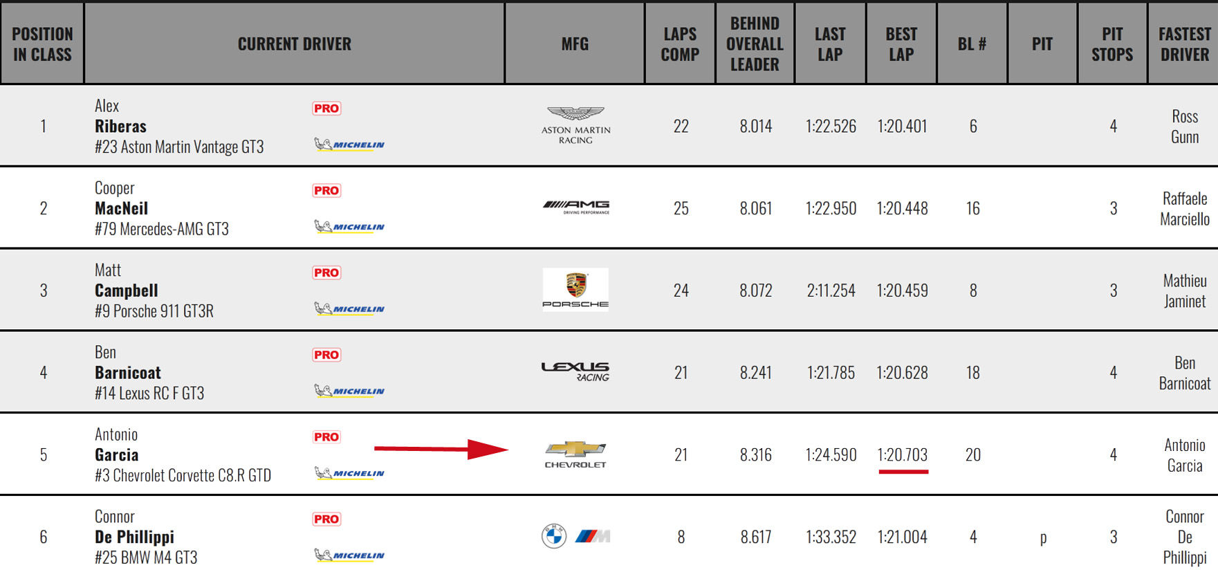 “We’ve seen in years past that if one of the Am guys (Silver- or Bronze-rated drivers in a GTD car) get out early by pitting at the beginning of their window before a yellow comes out, they can cycle to the front,” said Corvette Racing’s Jordan Taylor, a three-time series champion who shares the No. 3 Corvette C8.R GTD with Antonio Garcia in the GTD PRO class. “I think a GTD with an Am could win the race outright in the (GT) category. It’s so hard to pass now, especially with ABS (anti-lock braking system used in both GT classes). It’s going to feel like you’re flat out for pretty much all 100 minutes.”
