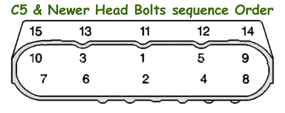 Finally, using the sequence above, torque bolts 11 through 15 to 22 lb-ft.