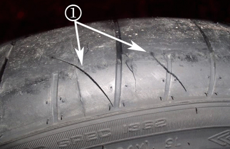 In colder climates, the special tread and compound used in high-performance tires will have decreased performance. In some cases, the special rubber compounds may lose flexibility in colder temperatures below 20°F (−7°C) and surface cracks in the tire tread/shoulder area may develop. (Fig. 2)