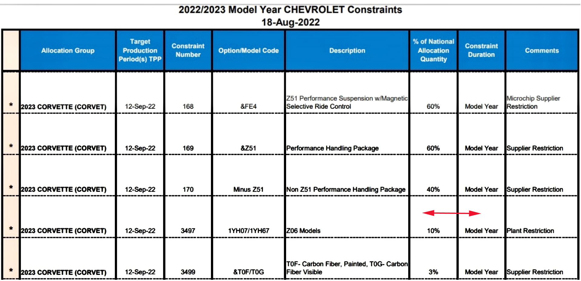 This is a screenshot from GM’s dealership computer software Also, bad news that only 3% would have the complete aero package (counting both the carbon flash & the visible carbon fiber versions).