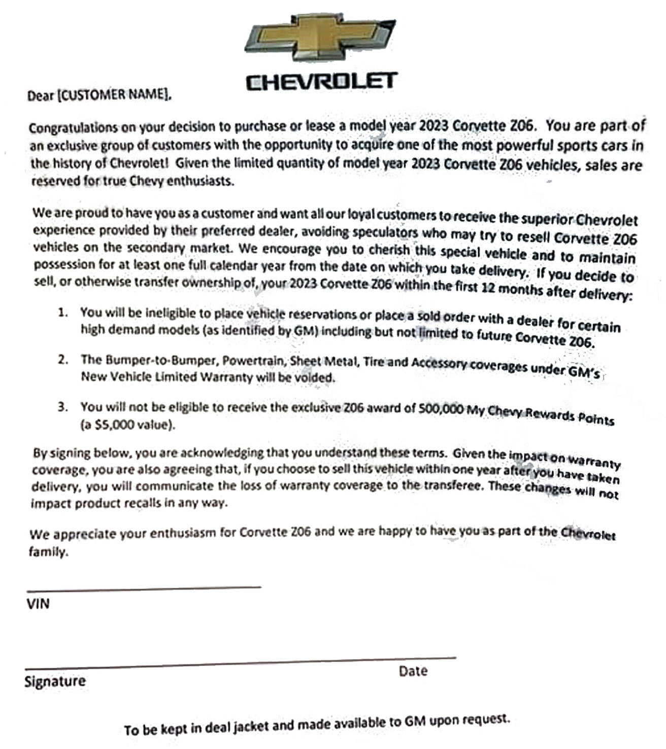 Last week I posted about GM giving buyers $5,000 to be used for GM stuff, IF they keep their Corvette at least 1 year I mentioned a RUMOR GM was going to stick it to the flippers by limiting GM warranty, and now it is GM law :