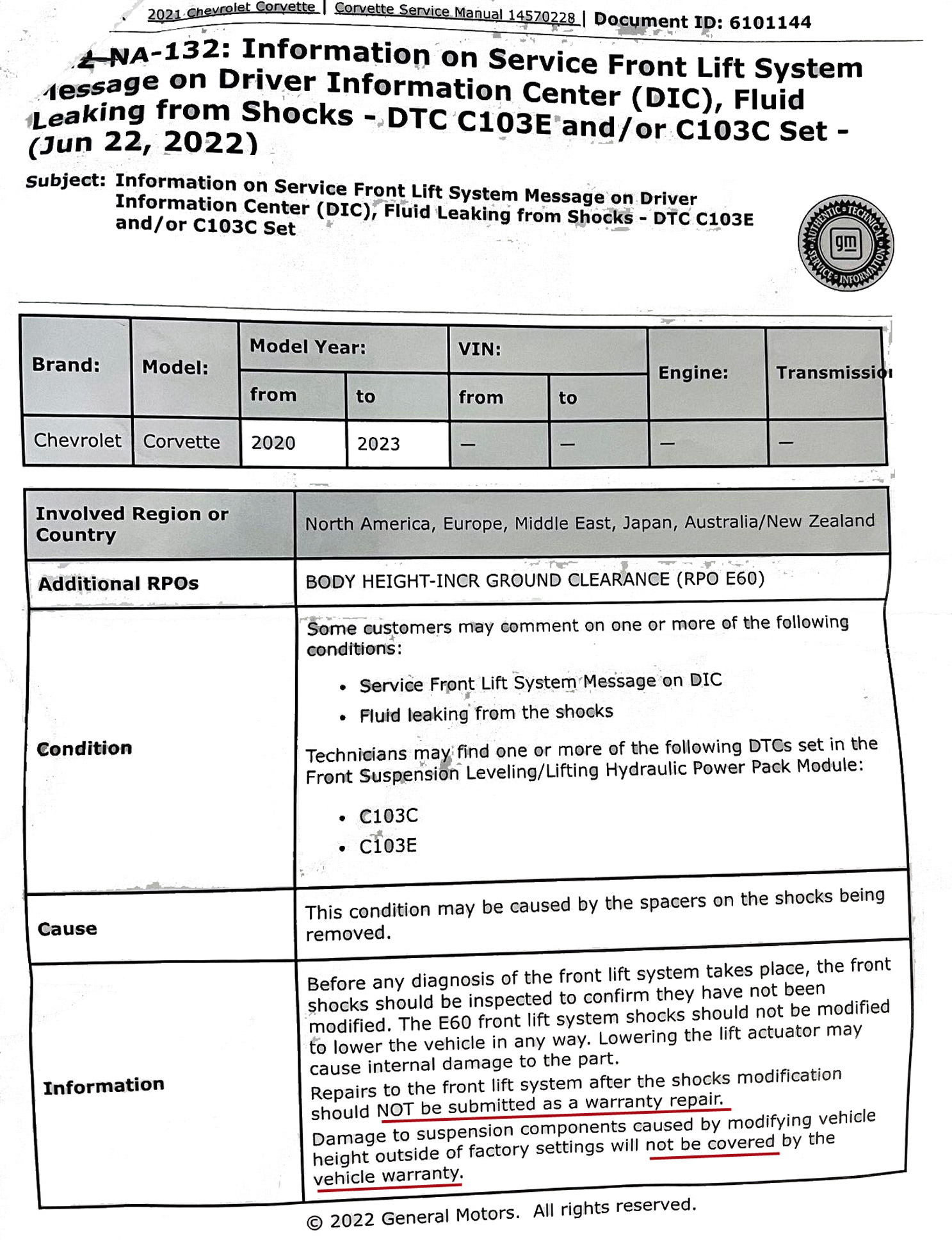 Wazers wanting to look cool are screwing up the suspension as forums to profit off of with "Supporting Vendors" marketing crap causing damage to C8 shock system and the lift system option,