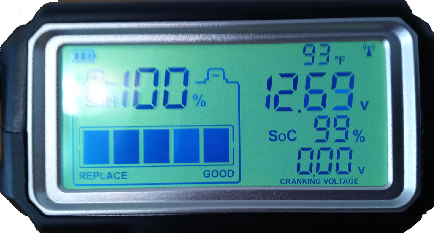 C8 owners find that the battery tender they use does not report the battery is 100% State of Health (SoH) but the State Of Charge (SoC) is 90% and battery voltage around 12.6 volts Each of the 6 cells of battery puts out 2.2 volts = 12.6 volts so as the remote battery monitor shows 12.6, thus SoH is 72 %