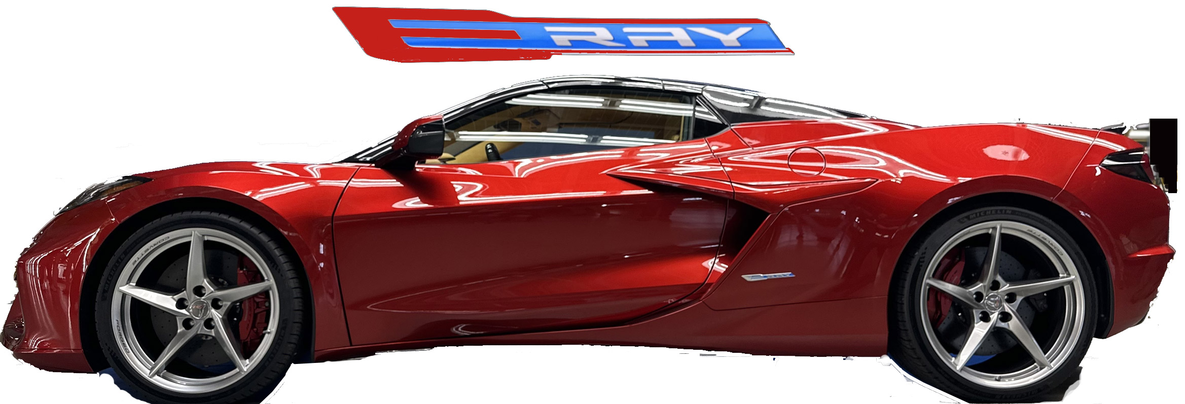 Armed with 655 combined horsepower (488 kW) and all-wheel-drive traction, the sprint from standing start to 60 mph (96.5 km/h) takes only 2.5 seconds according to Chevrolet, beating the mighty Z06 by 0.1 second while matching that 670-hp (500 kW) Corvette’s 10.5-second quarter-mile time. This performance distinguishes E-Ray as the quickest Corvette in history. The newfound drive traction compensates for the fact that E-Ray’s 3774-lb (1712-kg) dry weight top’s Z06 mass by 260 lb.(118 kg).
