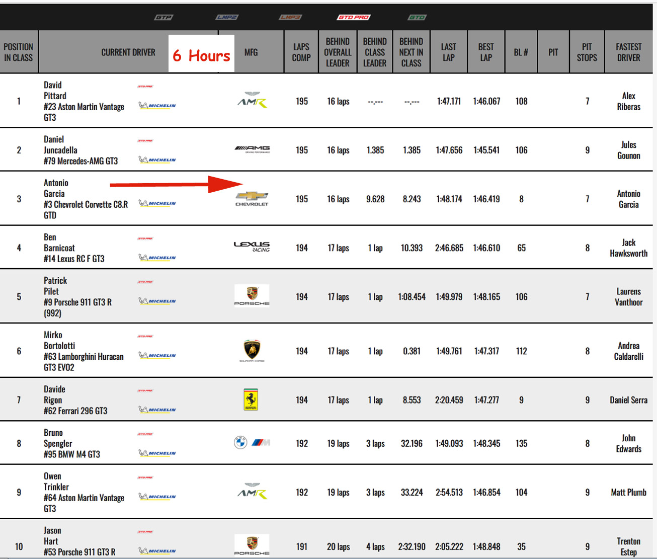 After 3 /1 and 6 Hours standings