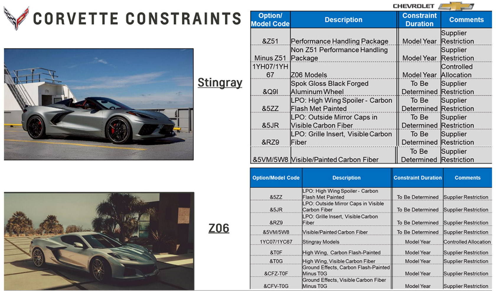 Info today direct from Chevrolet as it communicates its future Corvette plans with its dealers.