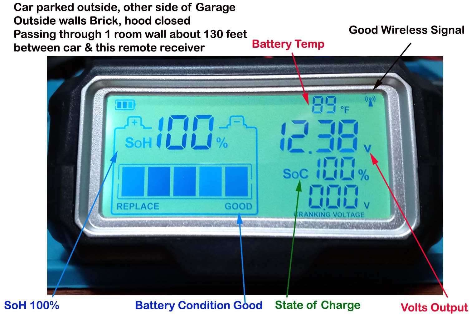 Now the added feature, this comes with a wireless monitor that will allow you to see the state of battery without going to the vehicle or even opening the hood