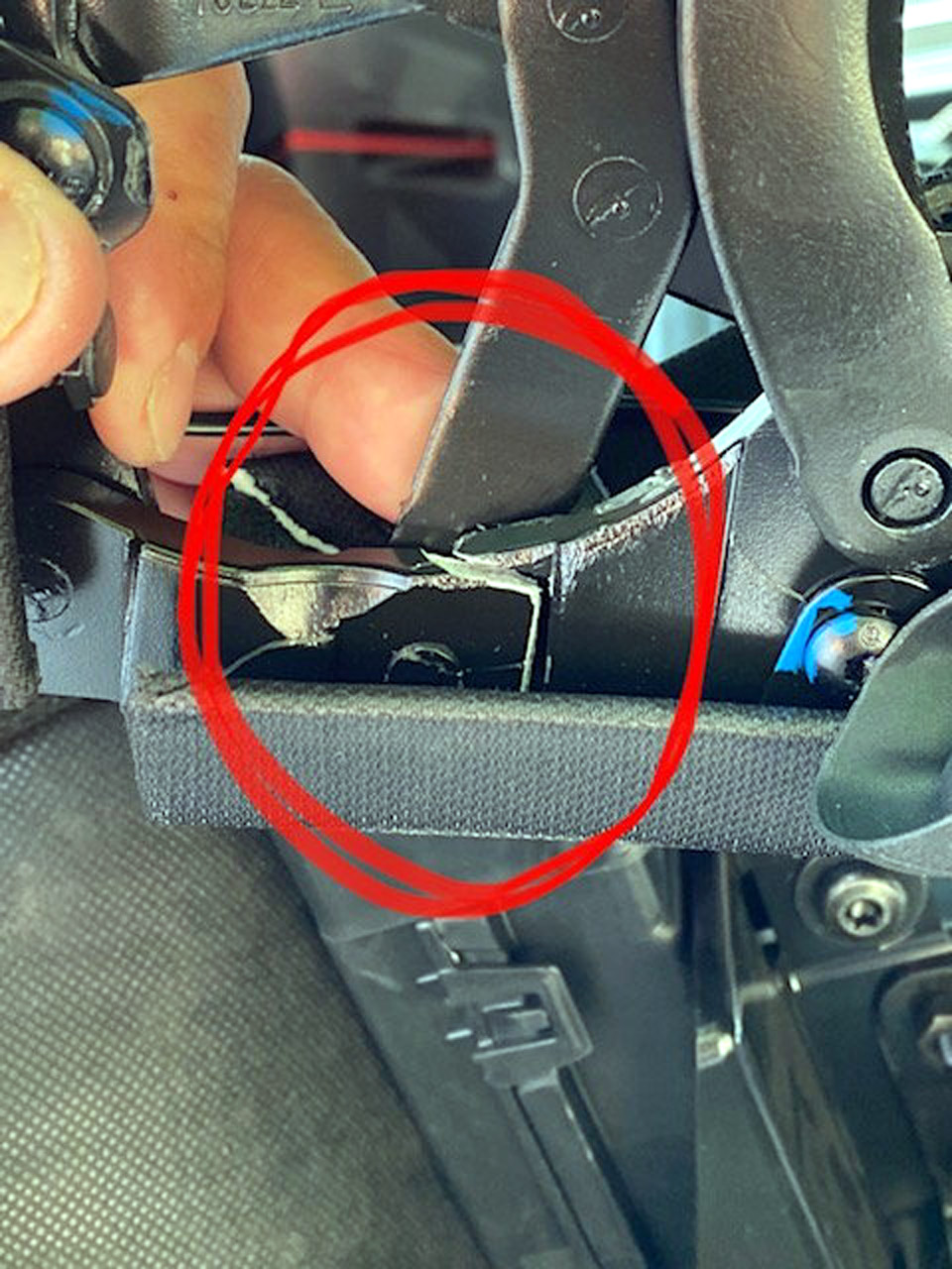 Looks like cheap metal for hinges for hard top busting when top comes down one hinge in this case was left side top came down crooked and hinge snapped and now top is stuck halfway down