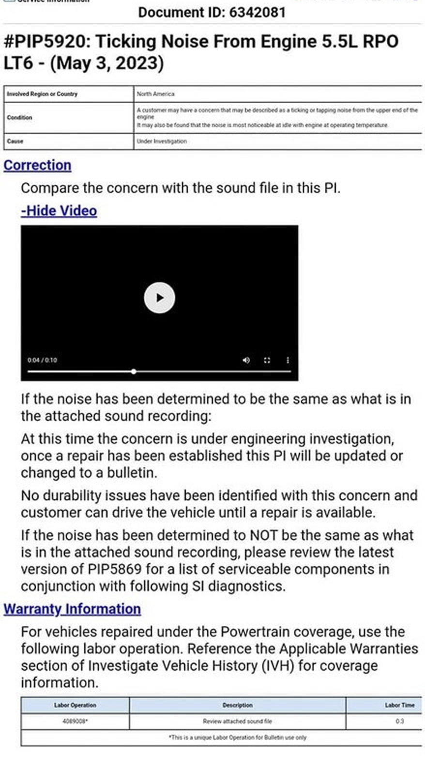 The sound that some owners have complained about is described as a ticking noise coming from the upper portion of the engine. Currently, this issue is related to the sound it makes, as there are no Check Engine Lights or other drivability issues with a Z06 exhibiting the sound.