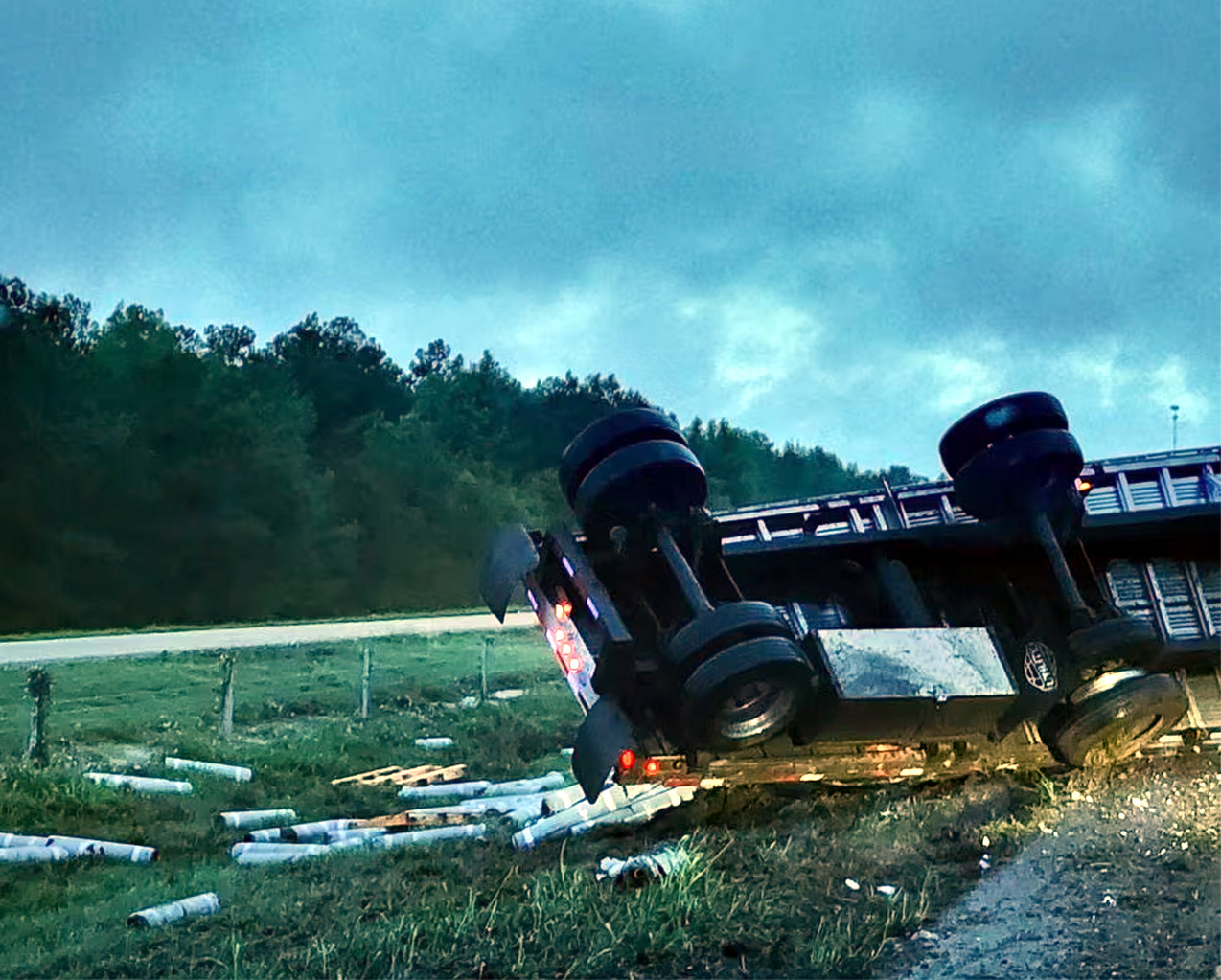 A Chevy Tahoe belonging to the sheriff’s office also became struck during the incident. Crews remained on scene for some time after the crash to clean up materials spilled from the 18-wheeler.