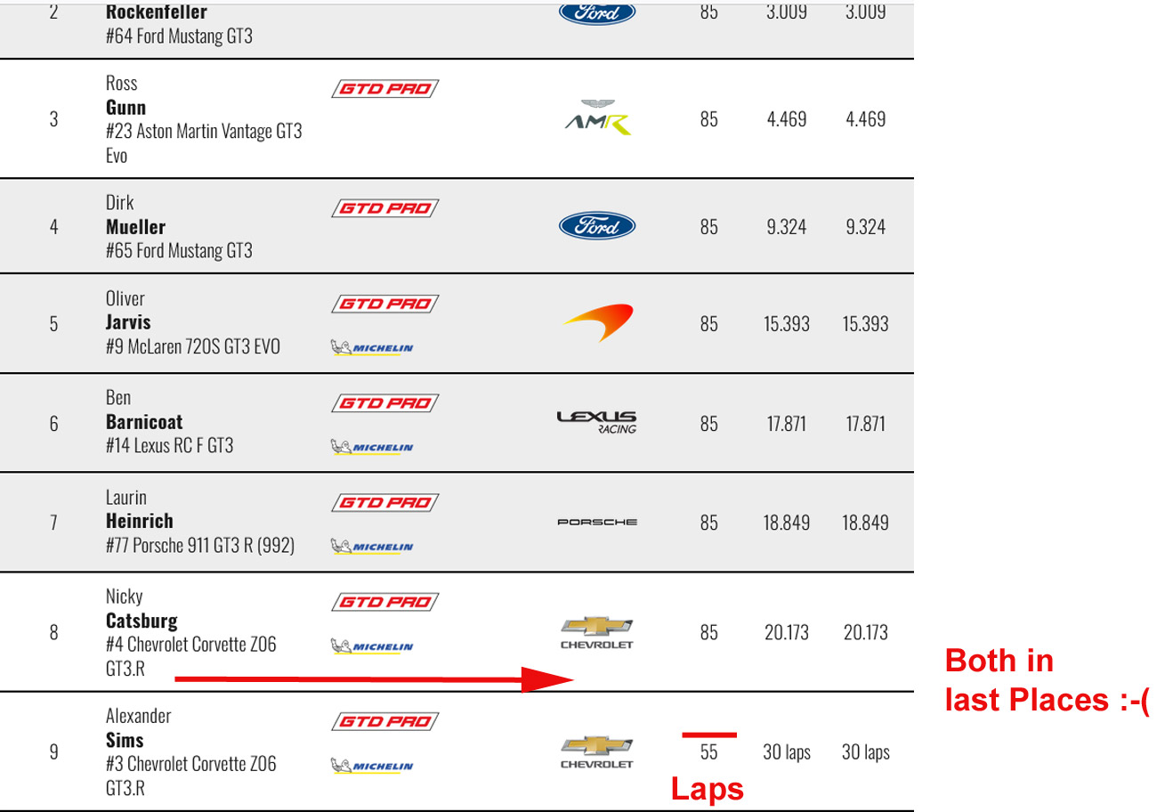 Sims also was at the wheel when the No. 3 suffered a suspension issue with 45 minutes to go.