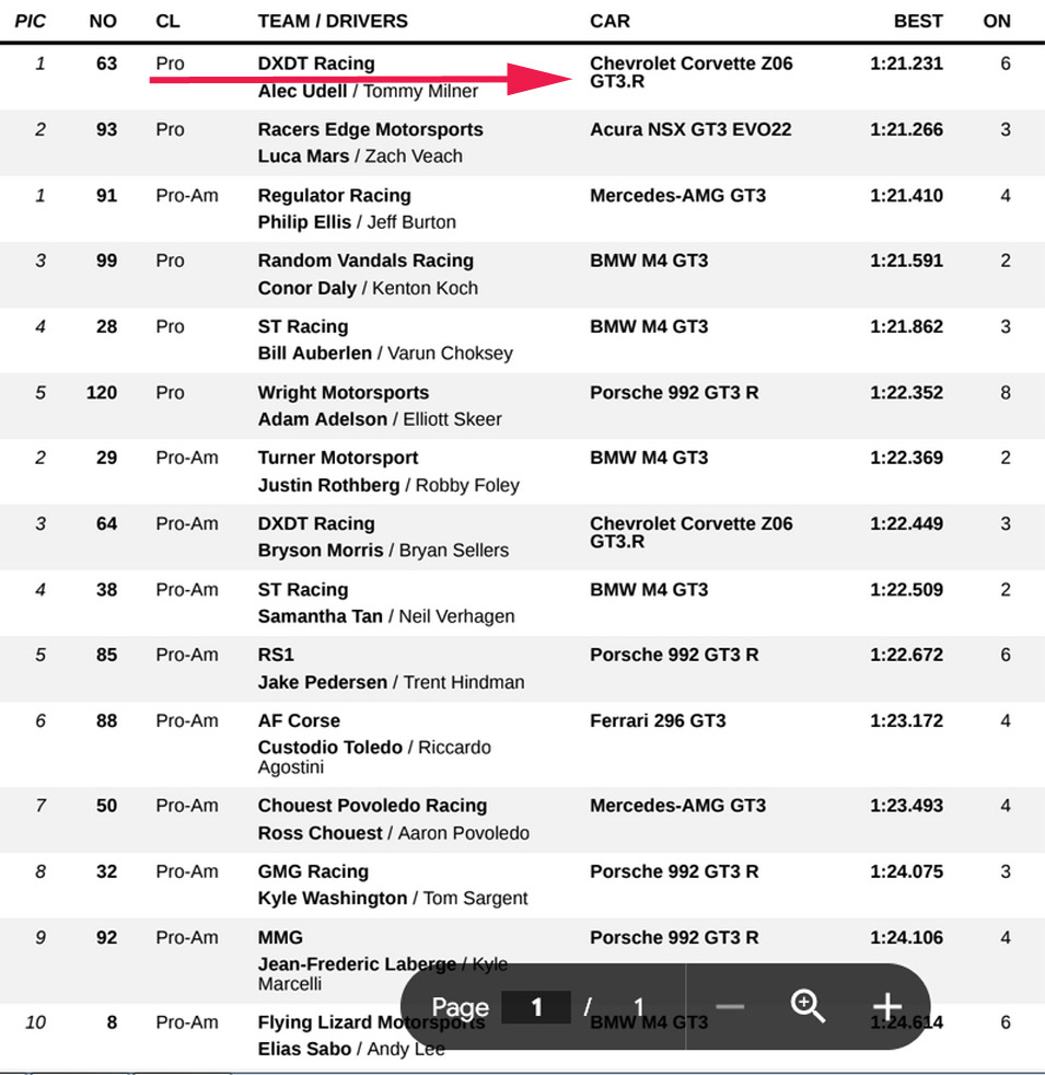 Barber also marked the second consecutive double-win for DXDT Racing with the Z06 GT3.Rs also picking up a second Pro-Am victory for Bryan Sellers and Bryson Morris following Race One in the newly minted No. 64 Corvette.